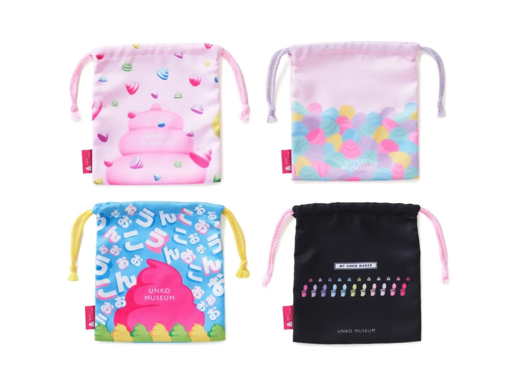 うんこミュージアムの象徴が巾着になりました。バッグの中も楽しく機能的に整理できます。